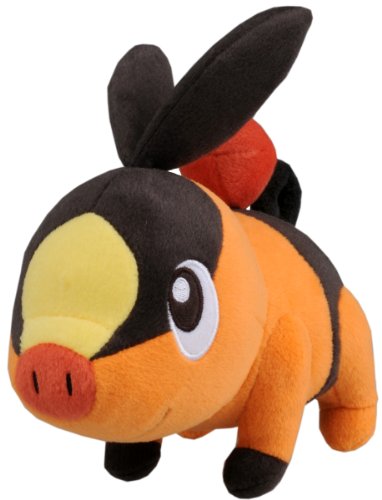 Pokabu is a pig-like Pok?mon, primarily orange in coloration with the additional colors of black, pink, and yellow on various portions of its body. It has large, ovular eyes, an archetypically piglike ruddy-pink nose, and a thick stripe of yellow over its snout. Much of its face has black coloration, and its ears, long and oblong, are positioned closely together on the top of its head. Pokabu has short legs, with the extremities of its forefeet being black in coloration. There is a band of black on its lower back and rear, from which extends its coiled tail, topped with a ruddy-red bauble-like adornment.